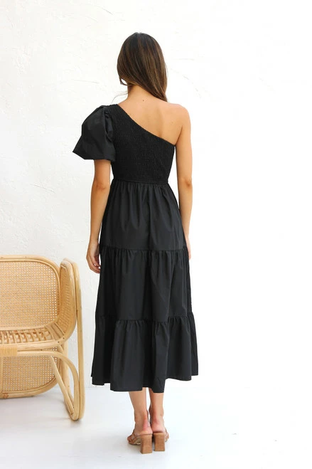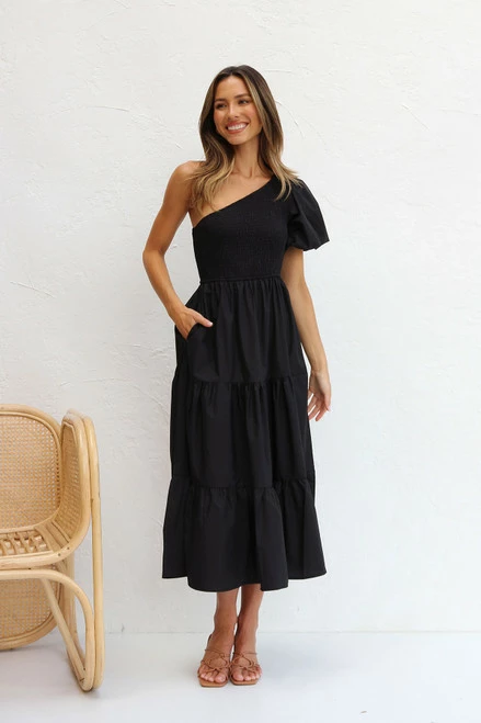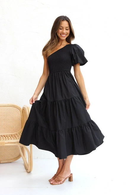 - one shoulder black dress