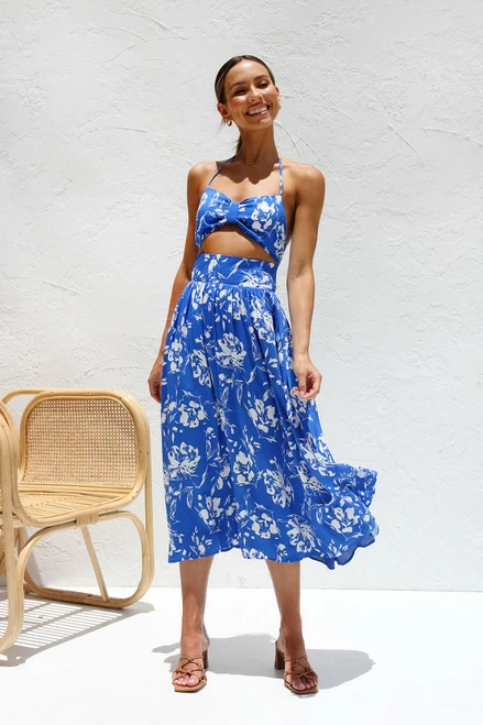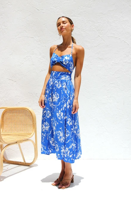 - blue floral midi dress