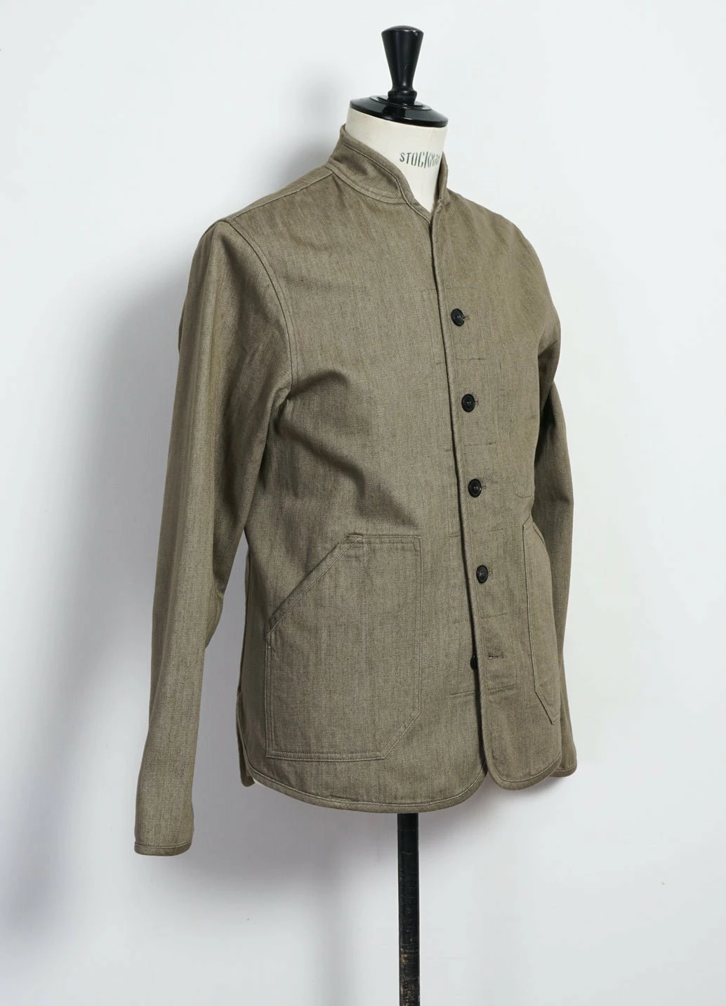 ERLING is a HANSEN signature item. It is a work wear-inspired jacket and it is quilted with a striped cotton/polyester herringbone lining. The stripes are polyester yarns and stay blue after the garment dye and creates this nice effect on the jackets inside.