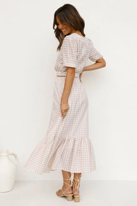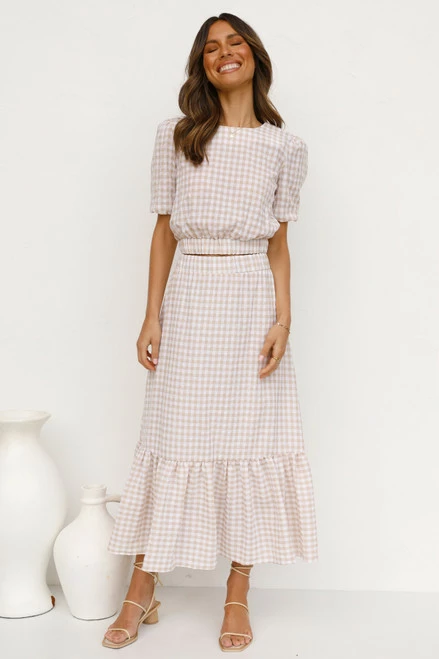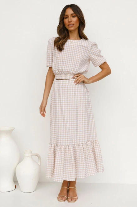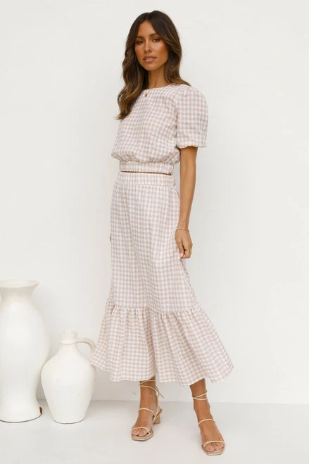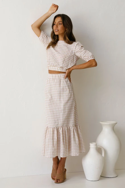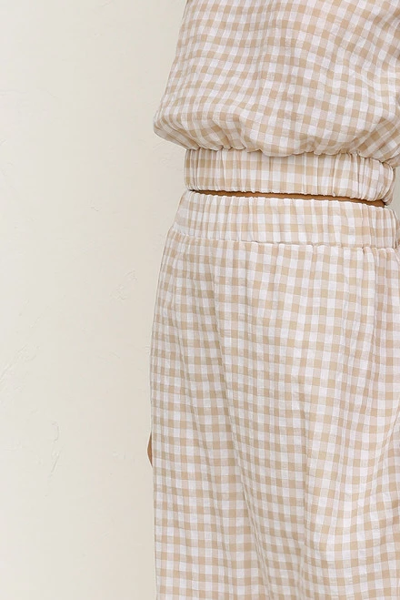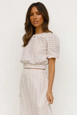 - beige gingham print top