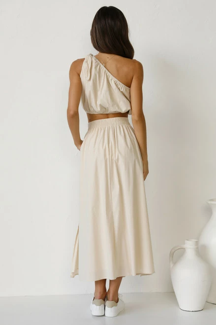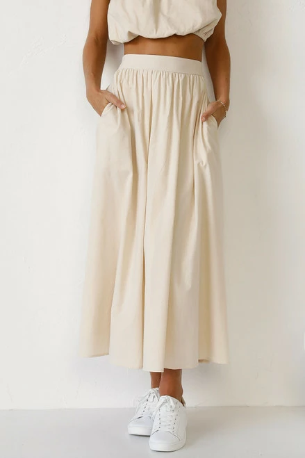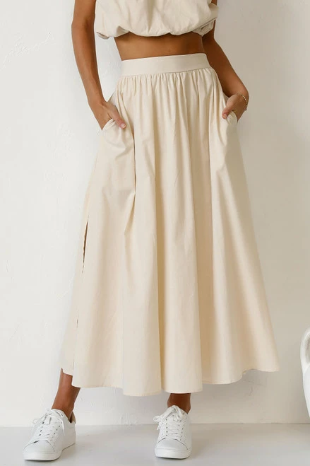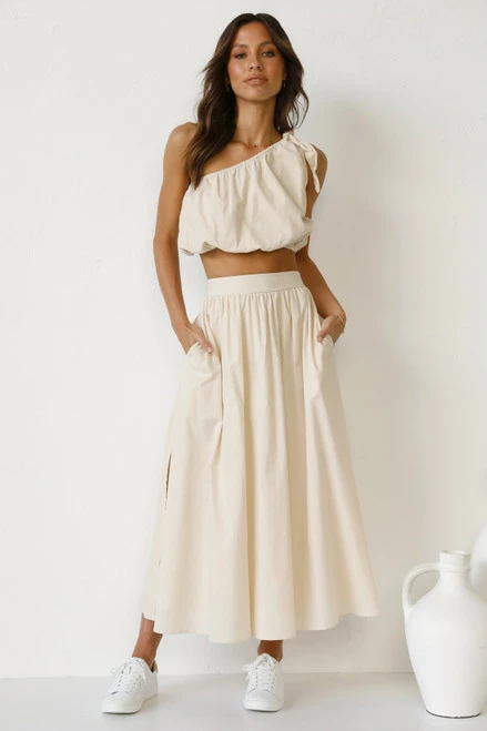 - beige maxi skirt