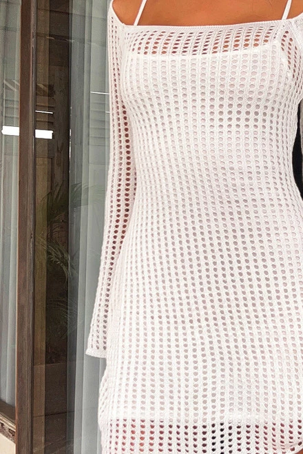 - white crochet mini dress