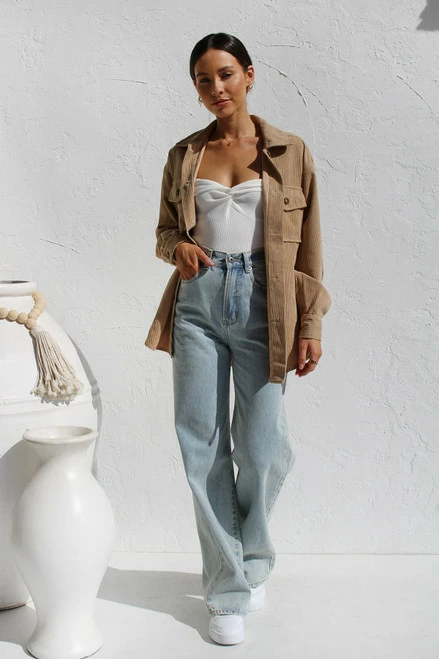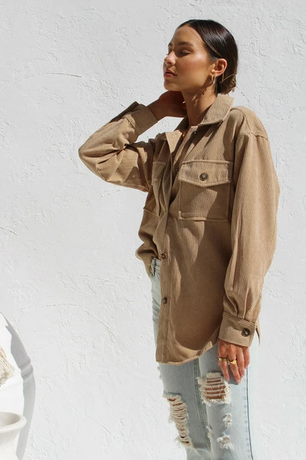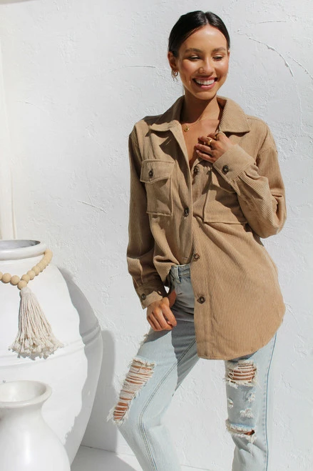 - corduroy shacket in camelÂ