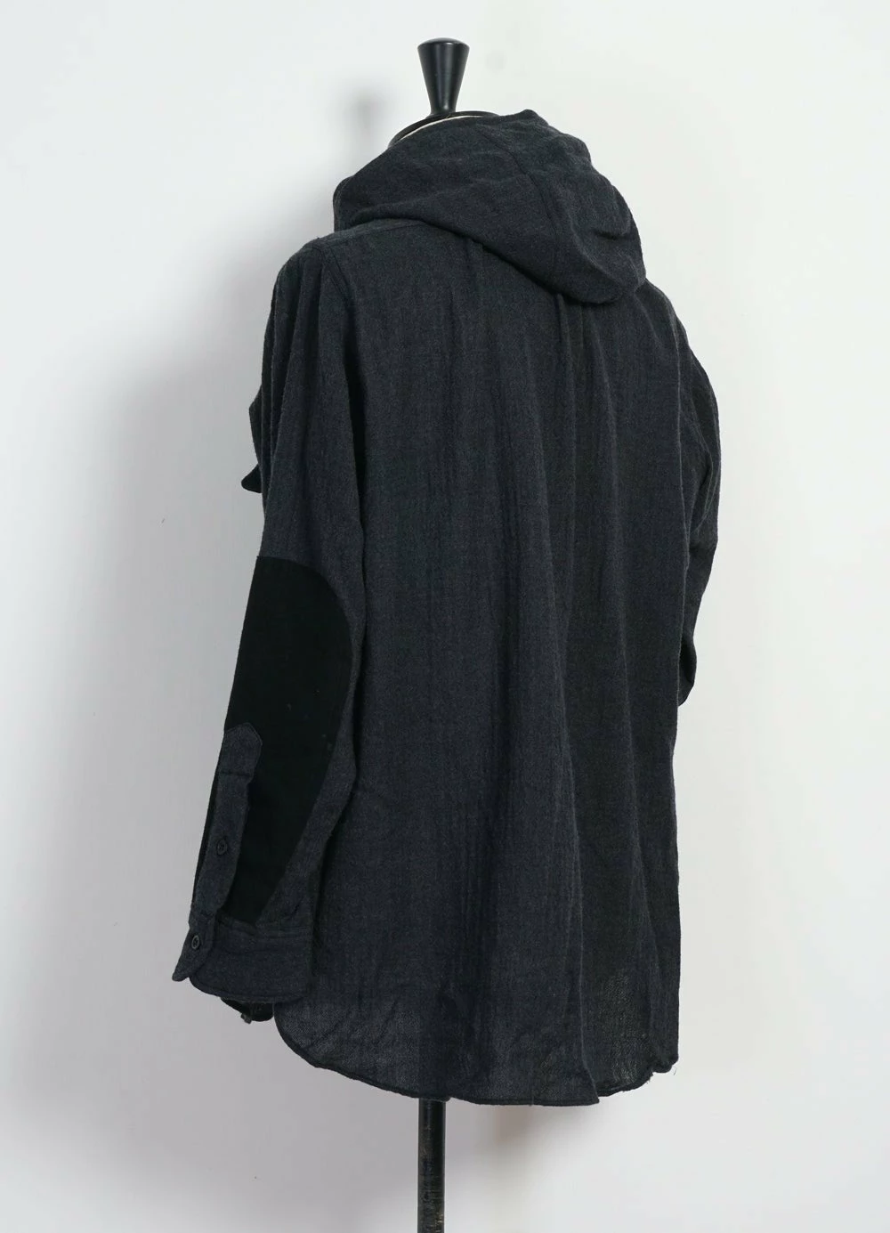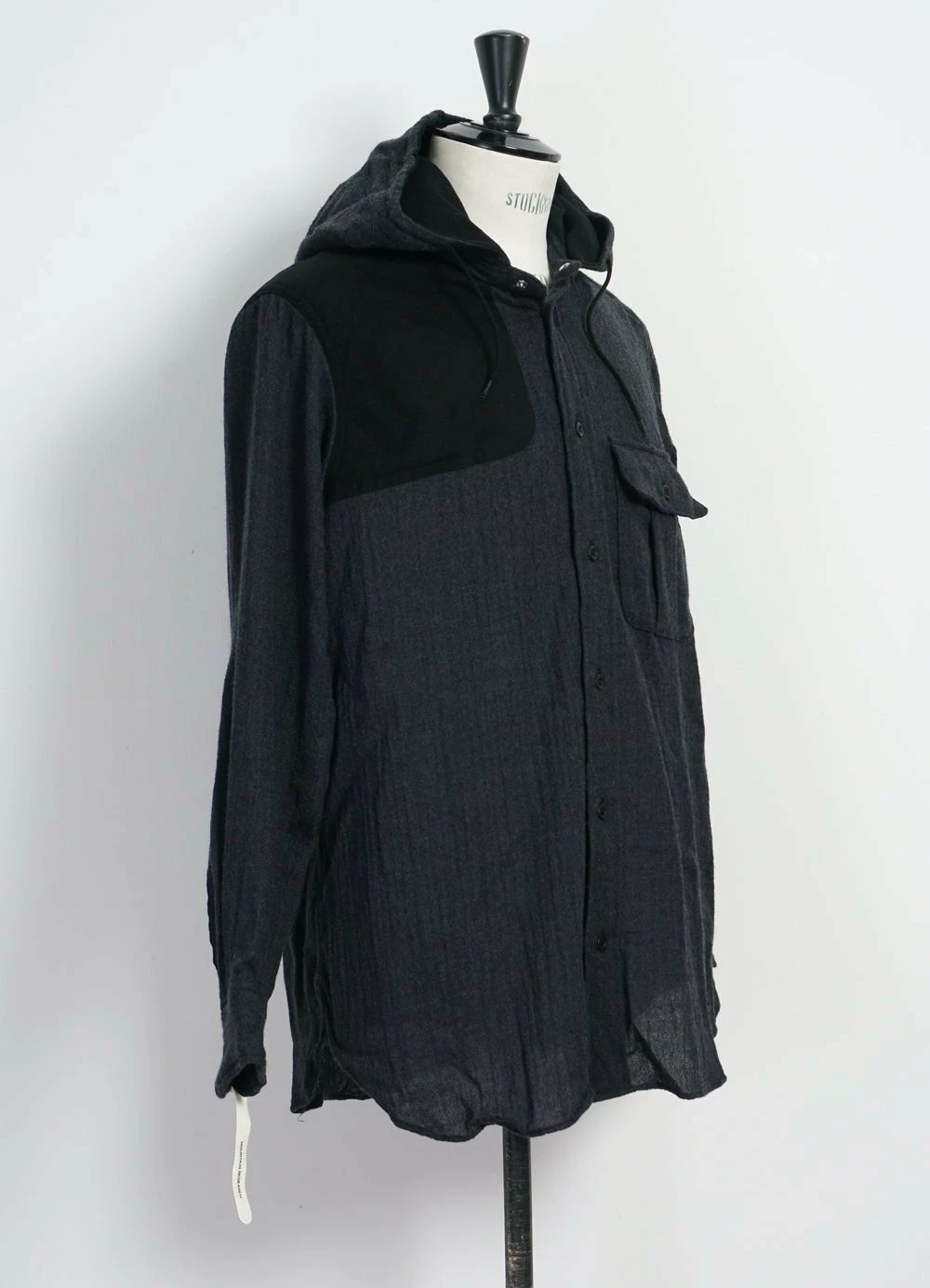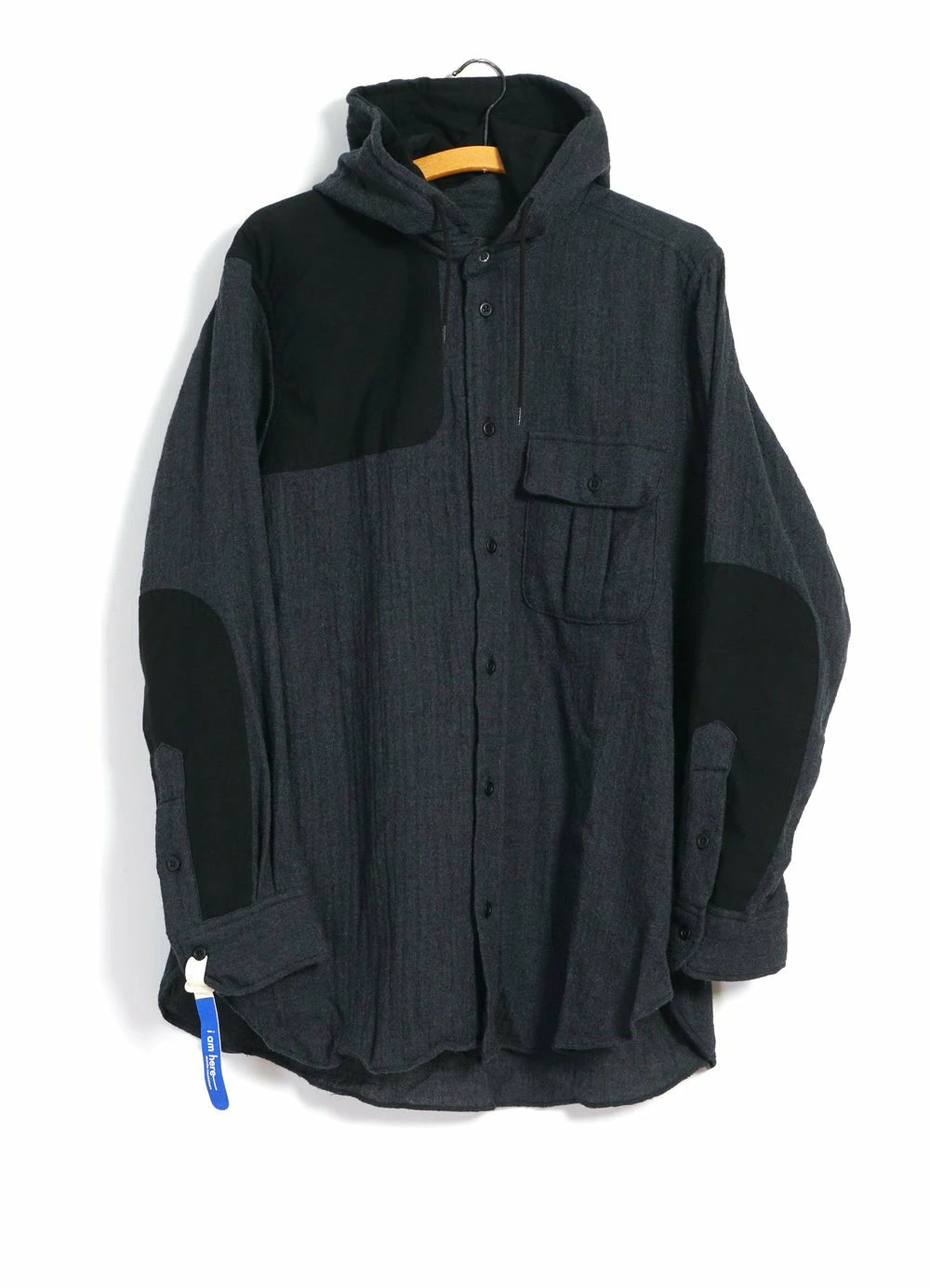 Hooded wool shirt featuring a chest pocket, shoulder patch on right shoulder and a fully lined hood.