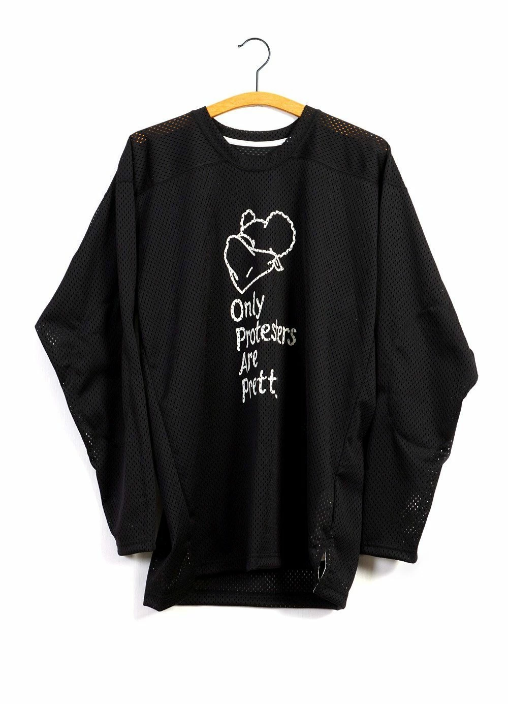 Long Sleeve Mesh Crew T with Printed Slogans
