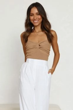 - strapless tan knit topÂ