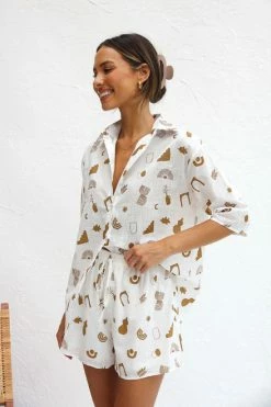 - top and short two piece set in tan printÂ