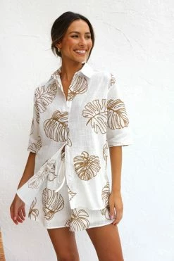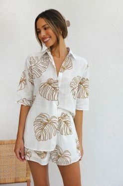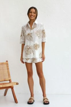 - relaxed fit collared button up top