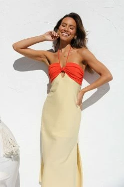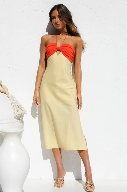- yellow and orange midi dress