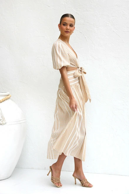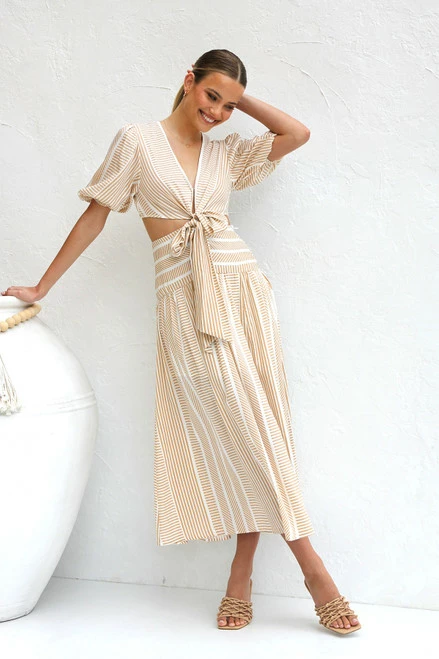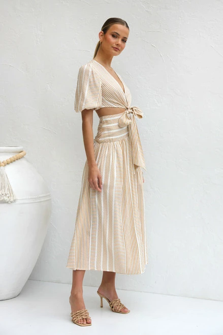 - camel and white stripe maxi dressĀ